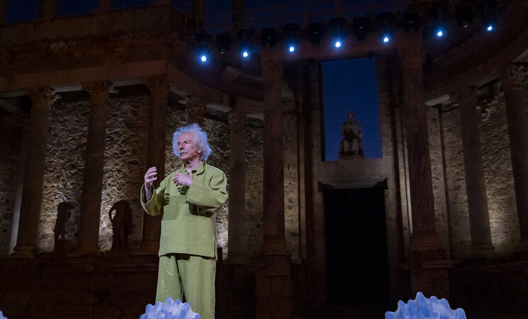 "La última vez que estuve en este teatro veníamos con mascarilla", ha recordado 'El Brujo' en el Teatro Romano de Mérida durante esta obra, que supone la tercera parte de una trilogía formada por 'Esquilo, nacimiento y muerte de la tragedia' y 'Los dioses y Dios', que también ha representado en el Festival de Mérida.