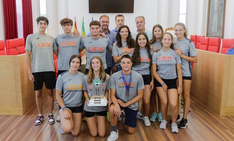 El alcalde de Mérida, Antonio Rodríguez Osuna, ha recibido en el salón de plenos al Club Natación Mérida con motivo de su tercer triunfo consecutivo en el campeonato de Extremadura Absoluto.