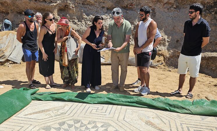Guiados por el director del Consorcio de la Ciudad Monumental, Félix Palma, y por la delegada de Formación para el Empleo, Pilar Amor, han podido conocer dicho mosaico que apareció, tras las excavaciones realizadas por alumnos de la Escuela Profesional Barraeca II del Ayuntamiento.