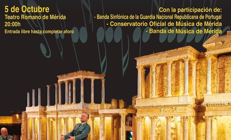 La Unidad de Música de la Guardia Civil ofrecerá el próximo sábado, 5 de octubre, en el Teatro Romano de Mérida, un concierto con motivo de los actos de la Patrona del cuerpo, la Virgen del Pilar, a las 20,00 horas, con entrada libre hasta completa aforo y, habrá otra sorpresa musical que se desvelará en el mismo concierto.