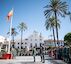 La bandera nacional ondea desde este lunes en la Plaza de España de Mérida y, cientos de vecinos han contemplado el momento en el que la bandera ha sido izada en un gran mástil junto a la fuente de la Plaza de España, mientras que otros han asistido al pequeño desfile que han realizado las unidades participantes por la calles Santa Eulalia y San Francisco.