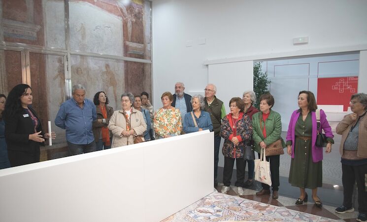 Mayores de Mérida han visitado este viernes el Museo Abierto de la ciudad (MAM) para conocer la exposición 'Los placeres de Augusta Emerita', en la que se realiza un viaje a través del tiempo para conocer la vida y los gustos de la época romana.