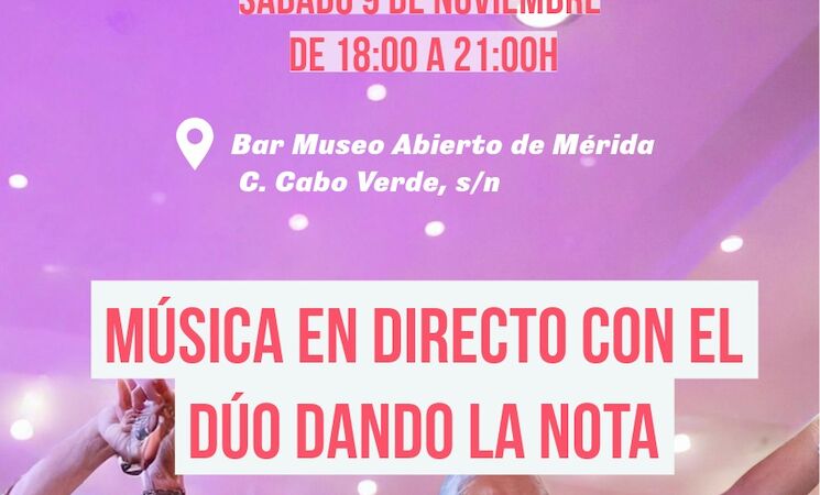 El Ayuntamiento de Mérida retomará este sábado, 9 de noviembre, los bailes para mayores en el Museo Abierto con el dúo 'Dando la nota', que tendrá entrada gratuita y se desarrollarán durante todos los sábados de noviembre y diciembre, de 18:00 a 21:00 horas.