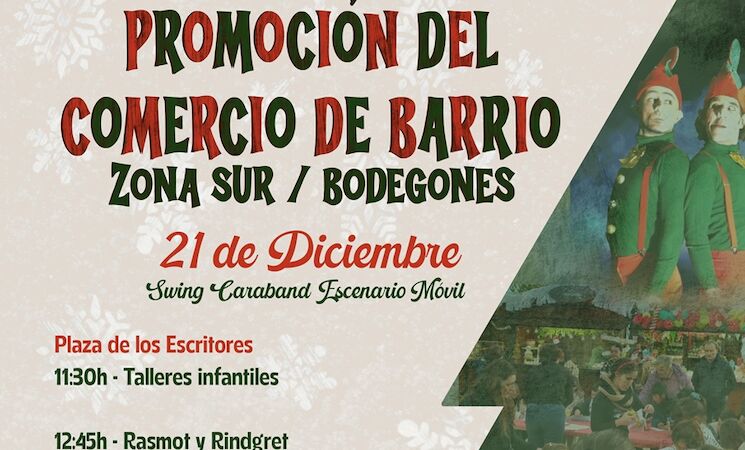 Las actividades de fomento del comercio local del Ayuntamiento de Mérida llegan esta semana a la Zona Sur. En concreto, este próximo sábado, 21 de diciembre, con talleres infantiles en la Plaza de los Escritores desde las 11:30 horas; pasacalles hasta la zona del Centro de Salud Obispo Paulo; y una paella para unas 150 personas a partir de las 14:30 horas, en este mismo lugar; y un concierto de boleros.