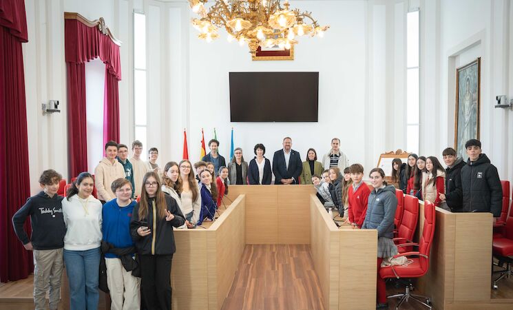 El alcalde de Mérida, Antonio Rodríguez Osuna, ha recibido este miércoles en el Salón de Plenos del Ayuntamiento a un grupo de 13 alumnas y alumnos del centro francés ‘Charles Lemaître’, en la región de Normandía, acompañados por tres de sus profesores.
