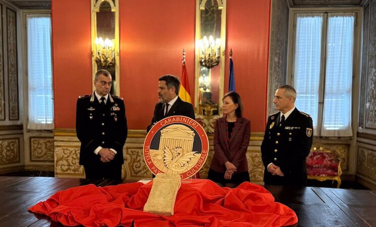 Este lunes, las autoridades italianas han hecho entrega de la pieza en un acto celebrado en la Embajada de España en Roma que ha contado con la presencia del embajador y los consejeros de Cultura y de Interior, de responsables de las unidades dedicadas a la investigación de este tipo de delitos de la Policía Nacional y del cuerpo de los Carabinieri, así como de la dirección general de Bellas Artes y Patrimonio.