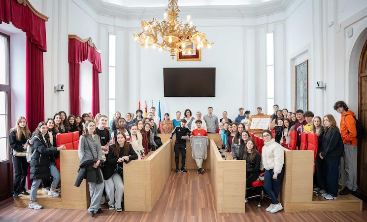 La delegada de Educación del Ayuntamiento de Mérida, Susana Fajardo, ha recibido este lunes en el salón de plenos del consistorio de la capital extremeña a un grupo de estudiantes y profesores del Lycée Délambre- Montaigne de Amiens (Francia), con el que el IES Albarregas de la ciudad realiza desde hace cuatro años un programa de "hermanamiento".