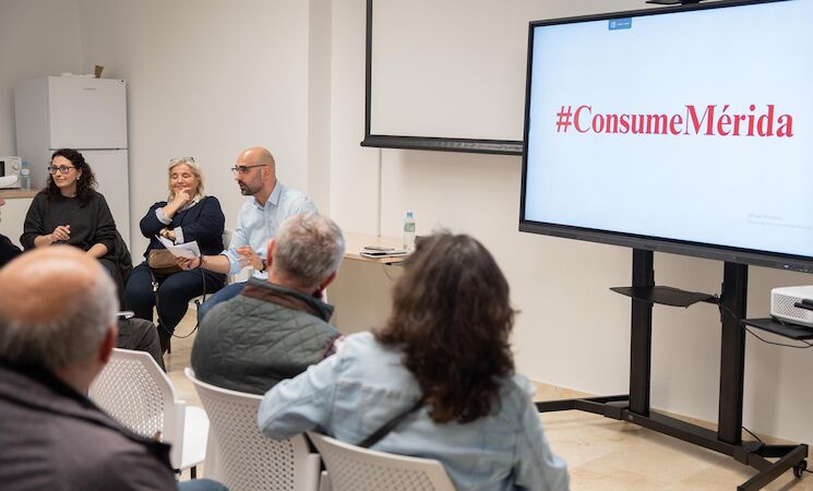 El delegado de Comercio y Emprendimiento, Ángel Calle, se reunió este martes con más de 35 comerciantes y empresarios de La Antigua de Mérida para presentar una serie de iniciativas y ayudas públicas para aumentar las ventas en los negocios de esta zona.