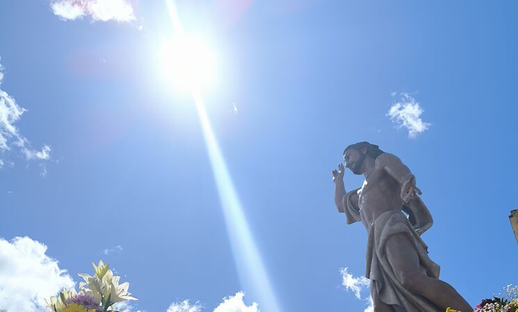 Así pues, a las 9:30 horas, los sones de la Banda de Cornetas y Tambores de la OJE anunciaban la salida de la procesión más alegre de la Semana de Pasión emeritense, la más importante para los católicos, en la que se celebra el culmen de la fe cristiana: la resurrección de Jesús después de morir en la cruz. En esta ocasión no ha habido fuegos artificiales en el atrio de la Basílica de Santa Eulalia, debido a que la Cofradía de Nuestro Padre Jesús Nazareno, Santísimo Cristo de los Remedios y Nuestra Señora del Mayor Dolor ha salido desde la calle Cardero debido a las obras que se están realizando en la zona.