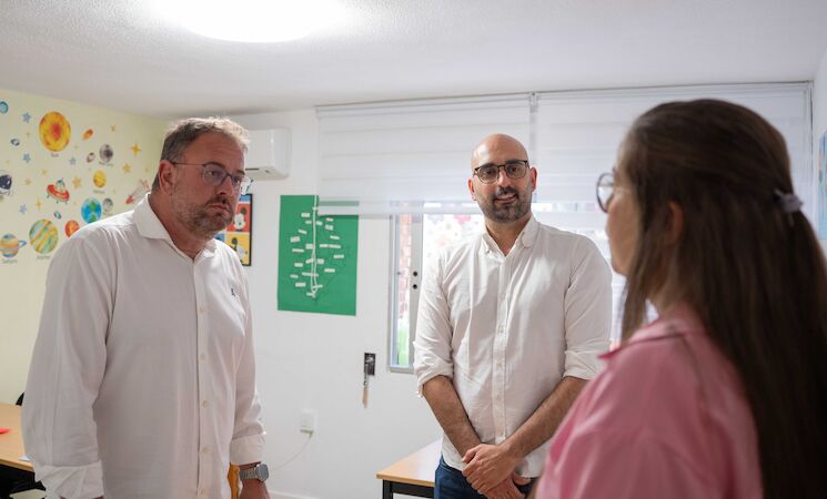 El alcalde de Mérida, Antonio Rodríguez Osuna, acompañado por el delegado de Comercio y Emprendimiento, José Ángel Calle, han visitado este martes, en la calle Moreno de Vargas 6, el nuevo Centro de Estudios “Aula 27” que imparte clases particulares a alumnado desde Infantil a ESO.