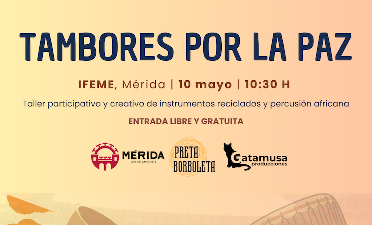 El taller 'Tambores por la Paz' se celebrará este sábado, 10 de mayo, en la Institución Ferial de Mérida (Ifeme) en una propuesta que "combina la historia, construcción de instrumentos y la percusión africana para promover la inclusión, la creatividad y la sostenibilidad social".