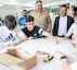 El alcalde de Mérida, Antonio Rodríguez Osuna, y el delegado municipal de Turismo, Felipe González, han visitado este jueves al alumnado del Instituto de Educación Secundaria (IES) 'Sáenz de Buruaga' que están acuñando la Moneda Oficial de la XV edición de Emerita Lvdica.
