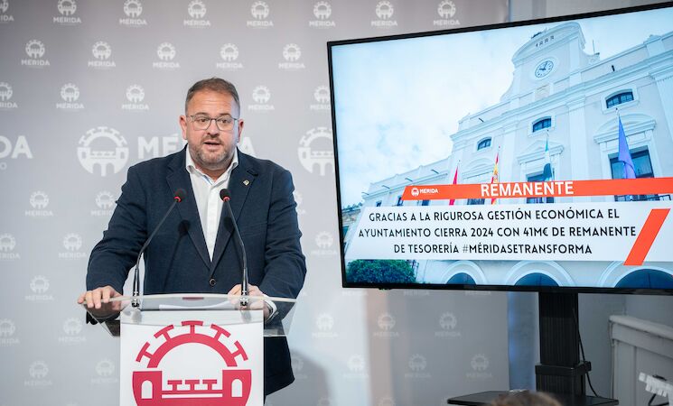 Asimismo, el consistorio de la capital extremeña cerrará la liquidación del presupuesto del año 2024 con un remanente positivo de tesorería, superávit, de 41.238.222,83 de euros, según ha anunciado el alcalde emeritense, Antonio Rodríguez Osuna.