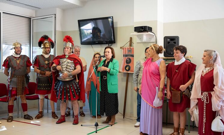 Un grupo de recreacionistas de Mérida han visitado este viernes, el Hogar de Mayores de la Zona Sur, para de esta forma, animarles a que participen en Emerita Lvdica, cuyas actividades se prolongarán durante toda la semana que viene.