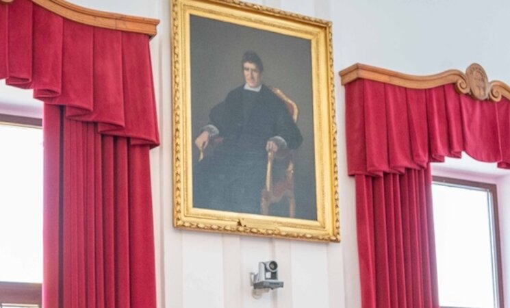 Descendiente de José María Calatrava conoce retrato del político en Ayuntamiento Mérida