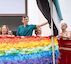 La Fundación Triángulo, acompañada por diferentes colectivos sociales, de discapacidad y vecinales, han entregado al Ayuntamiento de Mérida la bandera colaborativa LGTBIQ+ que han realizado, en diversos materiales, un centenar de personas bajo la coordinación de Costularte.