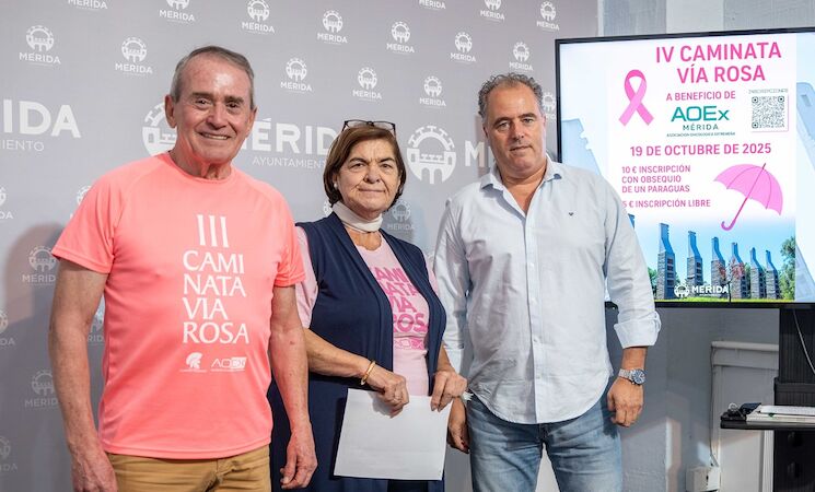 Además, la Caminata Vía Rosa "cumple este año su cuarta edición, consolidándose como una cita ineludible en la ciudad de Mérida; no se trata solo de caminar, sino de caminar juntos, uniendo fuerzas para sensibilizar sobre el cáncer, apoyar a quienes lo padecen y acompañar a sus familias”, ha afirmado José Luis Rodríguez, presidente de la asociación Caminos Romanos, que colabora en la organización del evento.