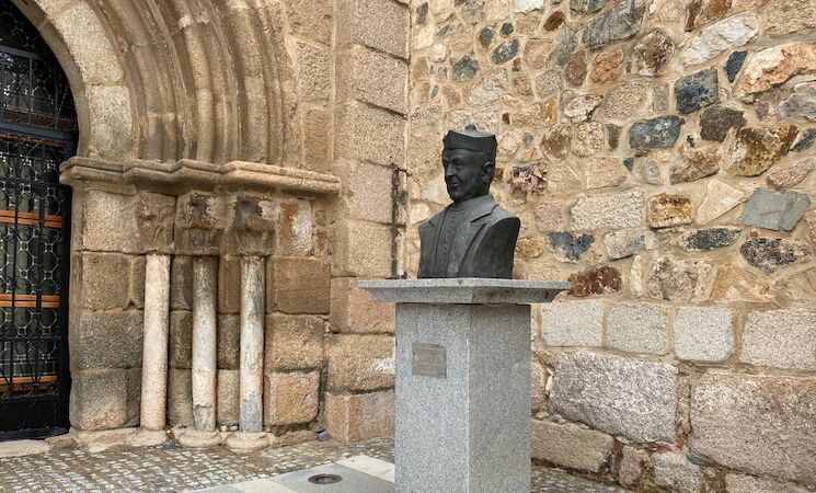 El busto de Don César ya luce en su nueva ubicación en la Plaza de Santa Eulalia de Mérida