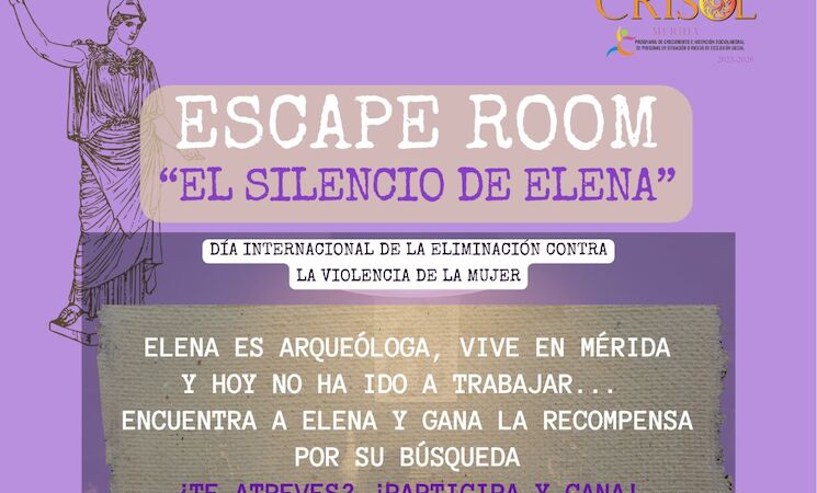 El Programa de Crecimiento e Inserción Sociolaboral de personas en situación o riesgo de exclusión social (Crisol) de Mérida ha organizado el escape room 'El silencio de Elena', que tendrá lugar el próximo 27 de noviembre en la Puerta de la Villa de la capital extremeña, a las 11:30 horas.