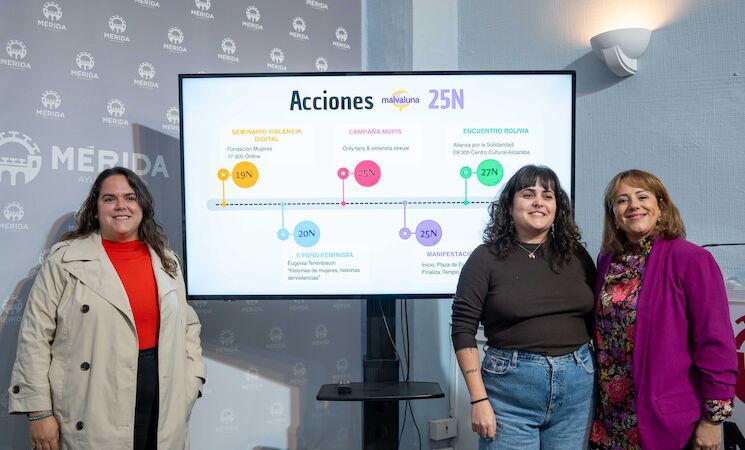 En concreto, la Asociación de Mujeres Malvaluna llevará a cabo con motivo del 25N una serie de actos, con la colaboración del Consistorio emeritense, motivo por el cual en la rueda de prensa también han participado las técnicas de Igualdad de este colectivo feminista, Alicia Ledesma y Alba Redondo