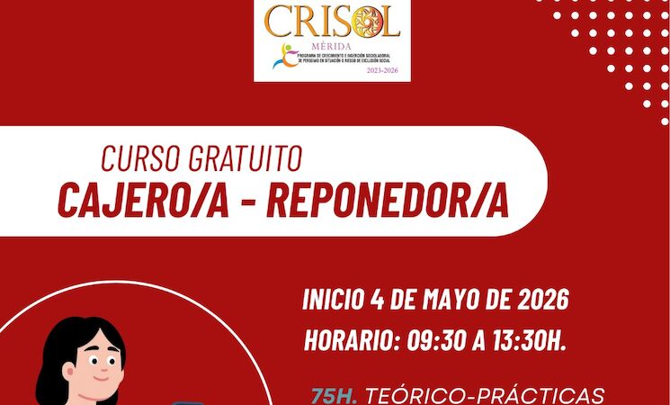 El Programa de Crecimiento e Inserción Sociolaboral de Personas en Situación o Riesgo de Exclusión Social (Crisol), pondrá en marcha dos nuevas acciones formativas en Mérida para este año 2026, una de ellas en Atención Higiénico-Sanitaria y otra de Cajero-Reponedor.