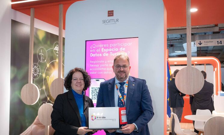 El alcalde de Mérida, Antonio Rodríguez Osuna, ha recogido este jueves, día 22, en el stand de Segittur en Fitur, en Madrid, el distintivo de Destino Turístico Inteligente Adherido 2026-2028 al programa DTI promovido por la Secretaría de Estado de Turismo.