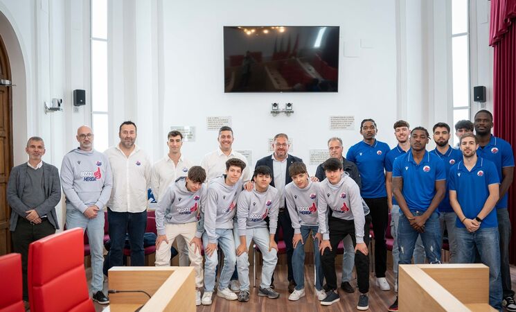 El alcalde de Mérida, Antonio Rodríguez Osuna, ha recibido este miércoles, 8 de abril, a la plantilla y cuerpo técnico del Bosco Mérida, que ha logrado la clasificación para el Play Off de ascenso a Segunda FEB en su primer año en Tercera FEB.