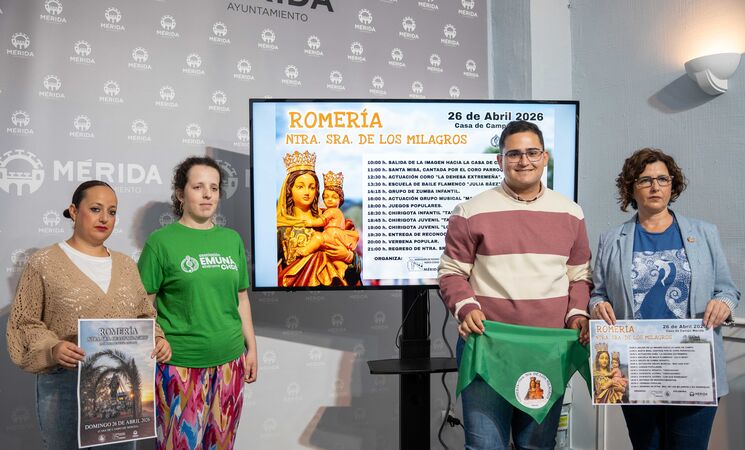Ya está todo listo para que la Asociación de Vecinos de Nueva Ciudad en Mérida celebre la Romería en honor a Nuestra Señora de los Milagros, que tendrá lugar este próximo domingo, 26 de abril, en la Casa de Campo y volverá a reunir a familias, asociaciones y colectivos en un ambiente festivo, reafirmándose como una de las celebraciones "más queridas" por los vecinos y vecinas, y como una "muestra del arraigo y la identidad compartida" de la ciudad.