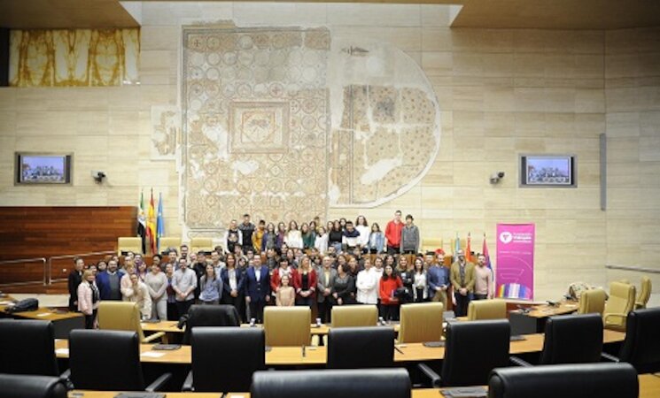 Alumnos de secundaria del IES Santiago Apóstol de Almendralejo (Badajoz) han protagonizado este lunes, día 2, el IV Pleno Escolar contra el Bullying por Lgbtifobia en el hemiciclo de la Asamblea de Extremadura.