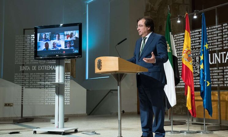 El Presidente de la Junta, Guillermo Fernández Vara, tras la octava Conferencia de Presidentes, que se ha celebrado vía telemática este domingo, entre el Presidente del Gobierno, Pedro Sánchez y, los Jefes de los ejecutivos autonómicos, ha resaltado que, "para la desescalada, tenemos que hacerlo de la mejor forma posible y, la única es, desde el diálogo".