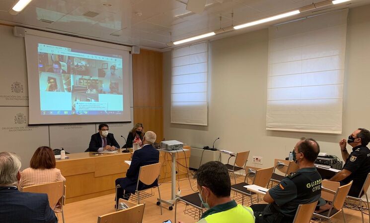 De este modo, durante la reunión para la coordinación policial en el seguimiento de las medidas sanitarias, se han dado cita la delegada del Gobierno, Yolanda García Seco, los subdelegados del Gobierno en Cáceres y Badajoz, el vicepresidente segundo y consejero de Sanidad y Servicios Sociales, José María Vergeles, y la consejera de Agricultura, Begoña García Bernal, además de representantes de la Fempex, Fuerzas y Cuerpos de Seguridad y Sector de Tráfico de la Guardia Civil, para "aunar criterios y estrechar la colaboración" en la lucha contra la pandemia del Covid-19.