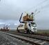 Además, tras el montaje de las ménsulas, se ha iniciado el tendido de la catenaria C350 (de 2x25 kV y 50 Hz), mediante un tren de tendido, con la composición de hilo de contacto, sustentador, péndolas y falso sustentador.