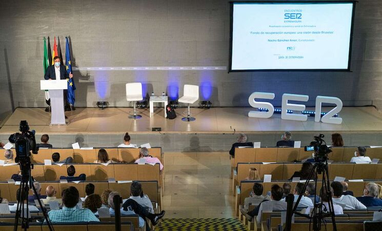 En concreto, el jefe del Ejecutivo regional ha realizado estas declaraciones en Mérida, durante su intervención en el Encuentro SER Extremadura ‘Fondo de Recuperación Europeo: una visión desde Bruselas’, con el eurodiputado Ignacio Sánchez Amor, en un acto al que también ha asistido la consejera de Igualdad y portavoz, Isabel Gil Rosiña.