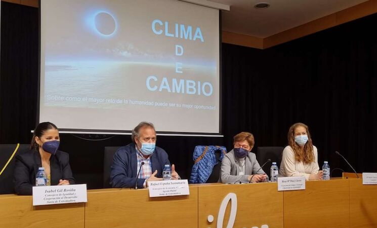 En concreto, el consejero de Economía, Ciencia y Agenda Digital, Rafael España y la consejera de Igualdad y Cooperación para el Desarrollo, Isabel Gil Rosiña, han participado en Cáceres en la jornada 'La Ciencia femenina del Cambio Climático', organizada por Fundecyt-PCTEx a través de la Oficina para la Innovación en colaboración con el Servicio de Difusión de Cultura Científica de la Universidad de Extremadura (UEx).