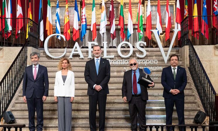 Al recibir el Premio Carlos V