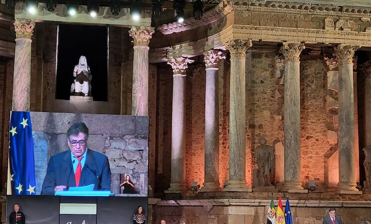 De esta forma, Landero se ha referido a los políticos de antes y de ahora, indicando "ireis al infierno por no haber traído el tren que Extremadura se merece", añadiendo "queridos políticos en confianza y cordialmente sois unos canallas", en un Teatro Romano repleto que ha respondido con vítores y un caluroso aplauso puesto en pie.