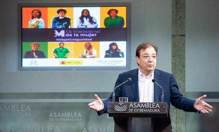 Así de tajante se ha mostrado el máximo mandatario extremeño durante su intervención en el acto institucional, celebrado en la Asamblea de Extremadura, con motivo de la conmemoración este miércoles, 8 de marzo, del Día Internacional de la Mujer, al que han asistido también miembros del Consejo de Gobierno.