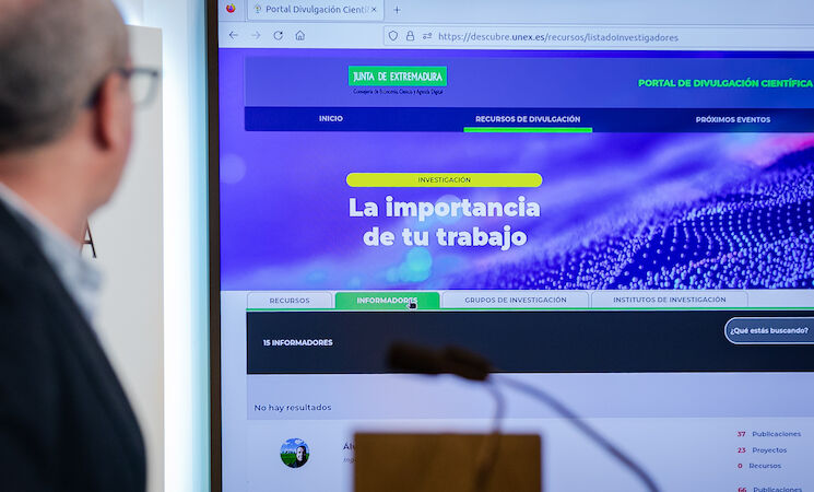 El nuevo portal ha sido presentado por el consejero de Economía, Ciencia y Agenda Digital, Rafael España, y el rector de la Universidad de Extremadura, Pedro Fernández Salguero, quienes han coincidido en señalar que se trata de una herramienta de comunicación cuyo principal objetivo es transmitir a los ciudadanos de forma sencilla la actividad investigadora que se desarrolla en Extremadura.
