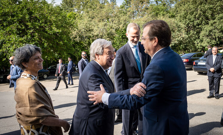 En su discurso, António Guterres se ha mostrado "sinceramente emocionado" por recibir este Premio Europeo Carlos V, algo que ha hecho en nombre "de toda la Organización de las Naciones Unidas, y ha recordado que en el Monasterio de Yuste "se retiró con humildad uno de los hombres más poderosos, si no el más poderoso, de su tiempo", Carlos V, quien "más allá de ser emperador, fue un hombre de contrastes".