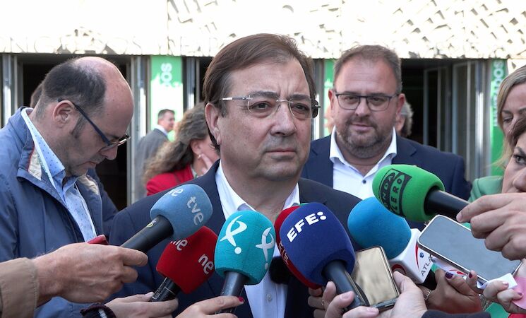 El presidente de la Junta en funciones ha realizado estas declaraciones, a preguntas de los medios, momentos antes de participar en Mérida en la entrega de los premios Convive, organizados por Iberdrola, donde ha asistido acompañado por los consejeros en funciones de Economía, Ciencia y Agenda Digital Rafael España, y de Transición Ecológica y Sostenibilidad, Olga García.