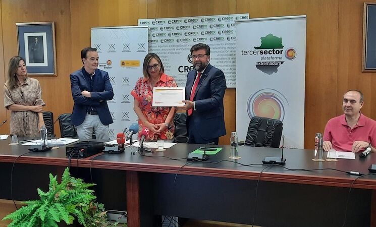 Así se ha puesto de manifiesto en una rueda de prensa en la que la presidenta de dicha plataforma, Carmen Pereira, ha entregado al secretario general de la Creex, Javier Peinado, un reconocimiento como embajador de la Casilla Empresa Solidaria que solo tienen diez personas o empresas en el país, y en relación al cual desde la Ptsex ha puesto en valor que, desde la puesta en marcha de dicha casilla, se ha comprometido, les ha facilitado y ha colaborado con ellos en su difusión, por lo que creen que merecía ese reconocimiento, que Peinado ha agradecido.