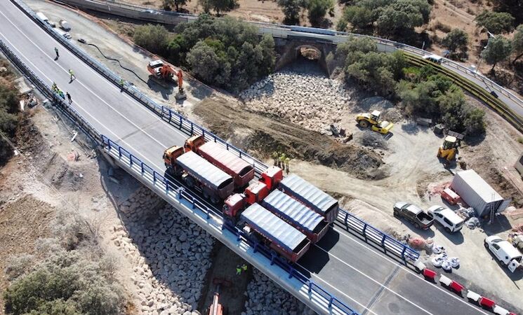 El Ministerio de Transportes, Movilidad y Agenda Urbana (Mitma) va a poner en servicio este viernes, 28 de julio, a partir de las 14:00 horas el nuevo puente de la N-523 sobre el arroyo Rivera de la Troya, de modo que se restituye definitivamente el tráfico en la carretera que une Cáceres y Badajoz.