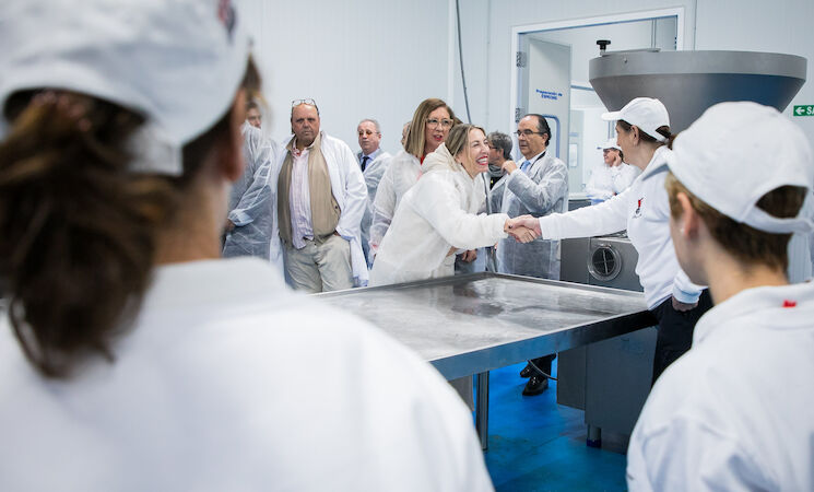 La presidenta de la Junta ha recordado los orígenes de la empresa extremeña ante sus fundadores, actuales socios y toda la plantilla: "Patricio une tradición y modernidad. Recoge el legado de sus abuelos, que tenían un pequeño negocio de carne y pan en su propio domicilio y le suma el de su tío y su padre, Vitoriano, que profesionalizaron aquella iniciativa doméstica invirtiendo en dos carnicerías. Y todo sin perder el sabor clásico, el gusto original. Creciendo, expandiéndose, adaptándose a los nuevos lenguajes y a las nuevas plataformas, pero sin olvidar sus raíces y sus valores".