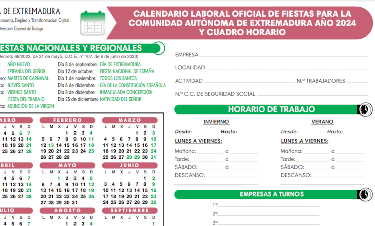 En concreto, este calendario de se publica antes de empezar el año en el Diario Oficial de Extremadura (DOE) y es competencia de la Dirección General de Trabajo de la Junta.