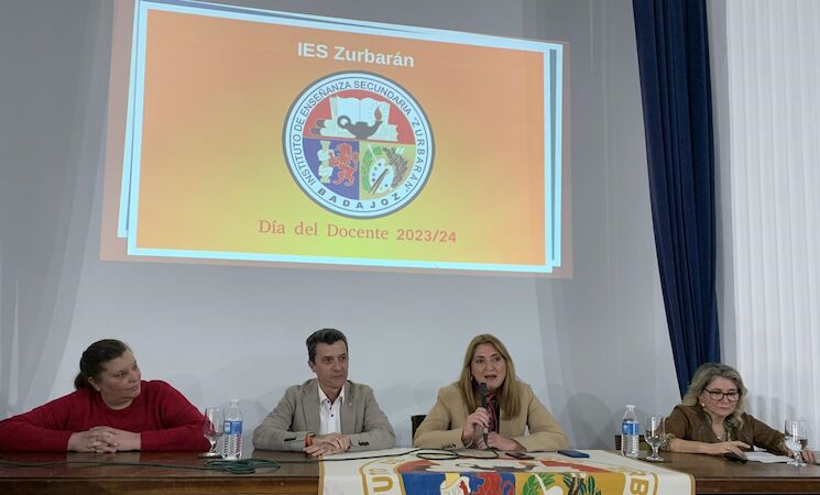 El acto, que ha comenzado con la participación del coro del IES Zurbarán, que ha interpretado, por primera vez, su propio himno, compuesto por Bonifacio Gil, ha contado también con la intervención del director del instituto, Rafael Domínguez, quien ha subrayado que "este centro funciona por la calidad de sus docentes y contamos con compañeros que nos apoyan en los proyectos, incluso docentes que ya no están en el centro, como es el caso hoy de Rafaela Cano".