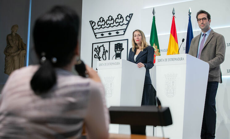 La presidenta extremeña ha agradecido a Carlos Cuerpo que "haya buscado un hueco en su agenda para escuchar los anhelos, las demandas y los intereses de Extremadura" y, ha indicado que "tenemos un plan y nos hemos comprometido con los extremeños a llevarlo a cabo".