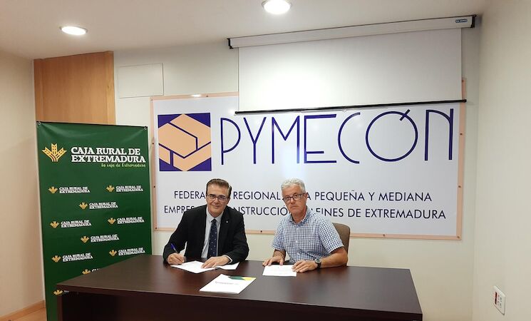 Caja Rural de Extremadura y la Federación Regional de la PYME de Construcción y Afines de Extremadura (Fundación Pymecon) han firmado este viernes, 20 de septiembre, un convenio de colaboración para apoyar a las empresas de este sector en la región, que en la actualidad genera alrededor de 30.000 empleos.