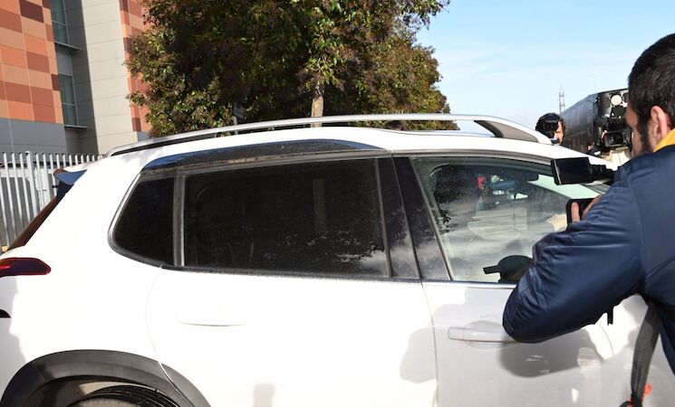 David Sánchez ha abandonado los Juzgados de Badajoz sentado en la parte de atrás de un coche blanco, con los cristales tintados, desde el garaje del edificio, por lo que no ha sido inmortalizado por las decenas de cámaras de le esperaban a su salida.