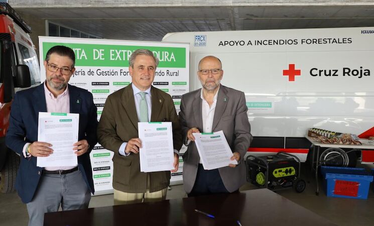 En concreto, este acuerdo ha sido suscrito por el director general de Prevención y Extinción de Incendios, José Antonio Bayón Carvajal, y el presidente del Comité Autonómico de Cruz Roja Española en Extremadura, Fernando Solís Fernández, en presencia del consejero de Gestión Forestal y Mundo Rural, Ignacio Higuero.