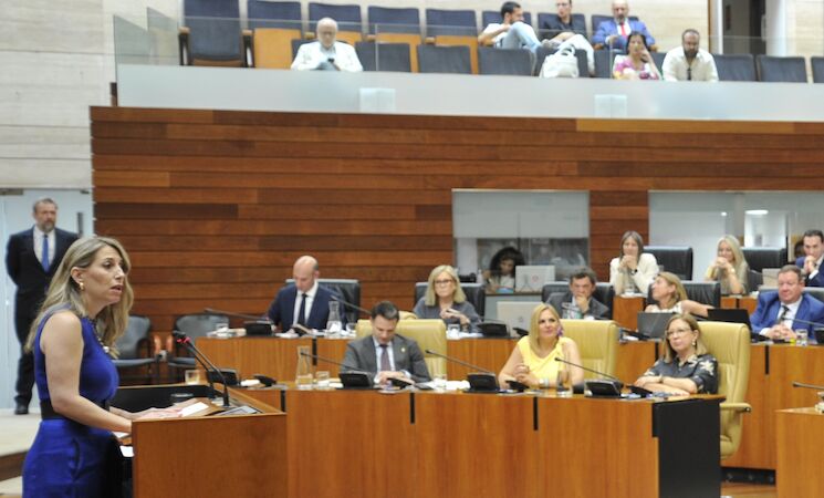 La Jefa del Ejecutivo Regional indica que es "un tiempo en el que cada extremeño y cada extremeña sabe perfectamente que tiene a este gobierno a su lado, porque para eso estamos, señorías, para servir, estamos para cumplir, estamos, desde luego, no para buscar excusas. Nosotros defendemos una Extremadura libre, moderna, ambiciosa, orgullosa y respetada, una tierra que ya no se arrodilla ante nadie, una tierra que ya no se calla y que se ha cansado de esperar".